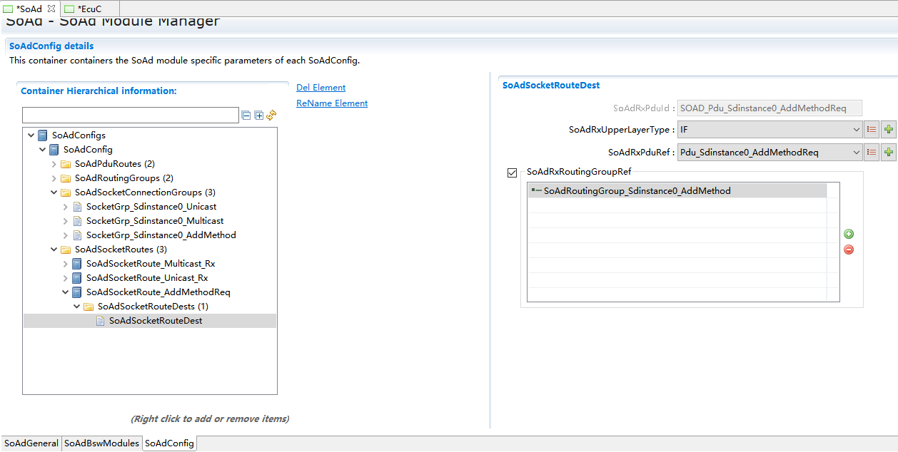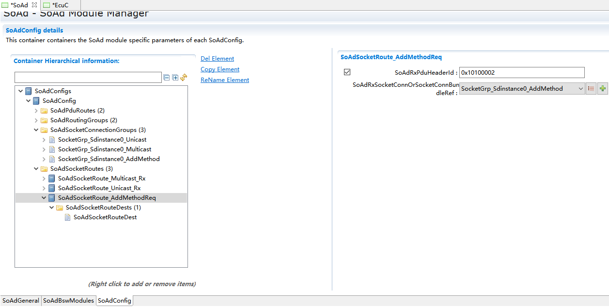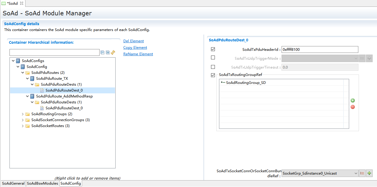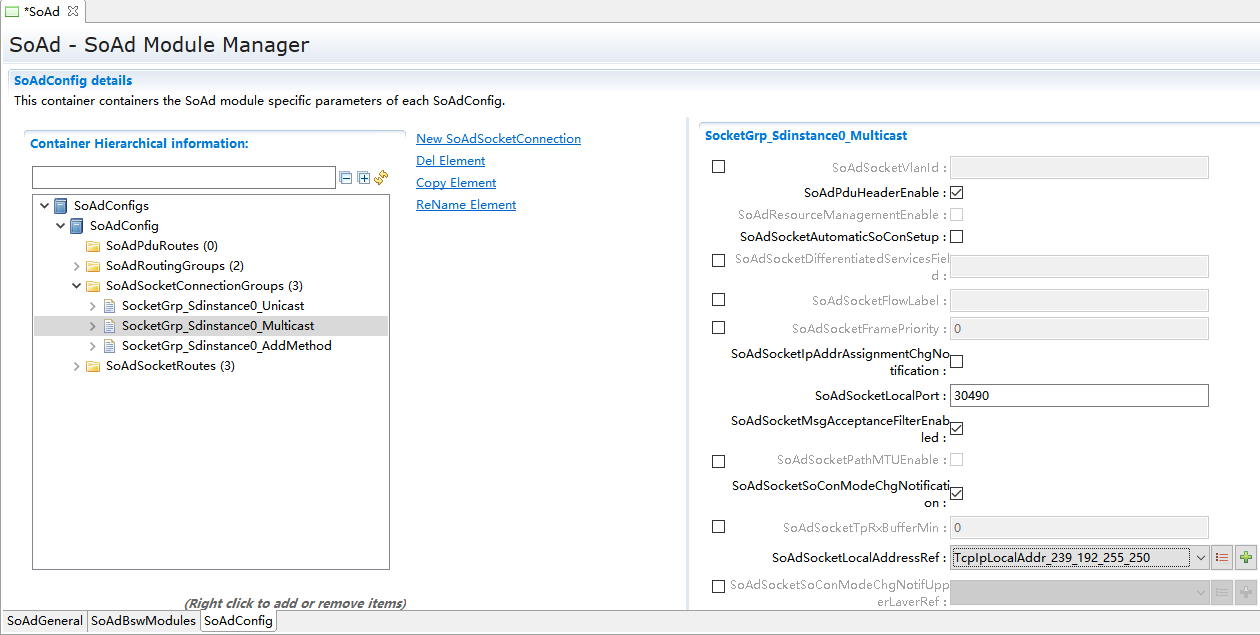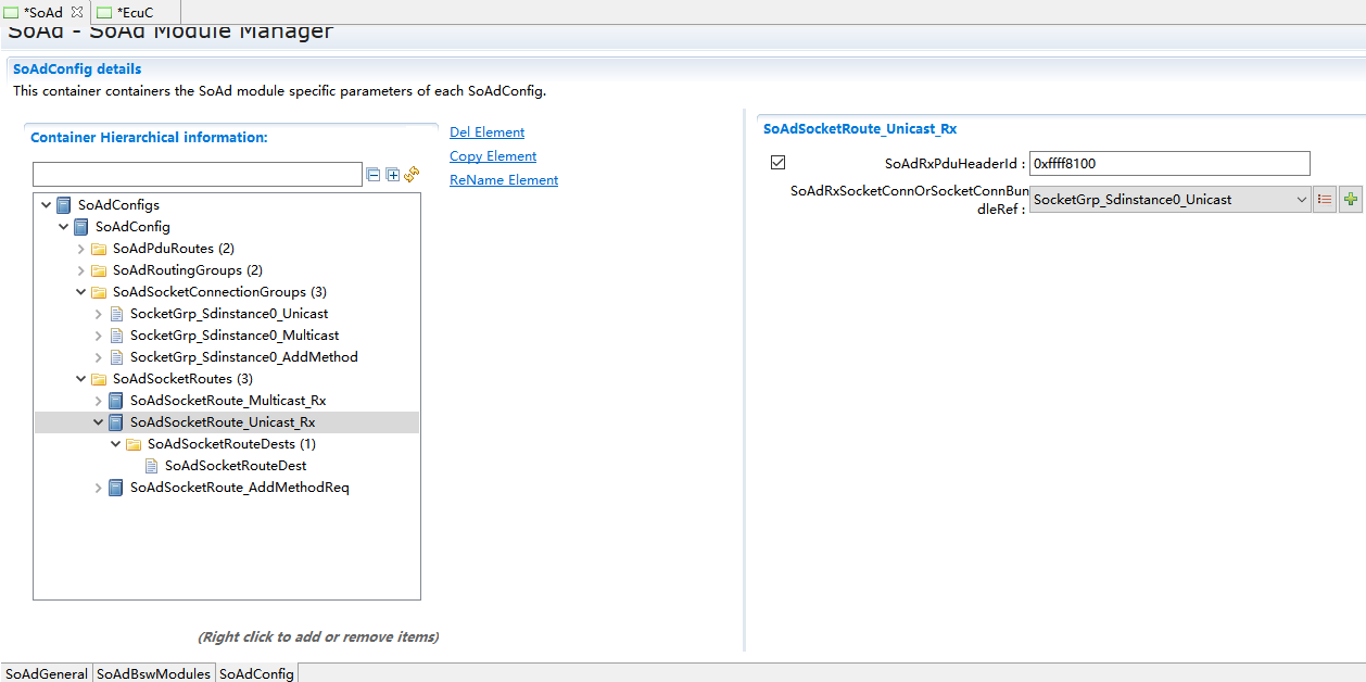 配置3个PDU用于用于SD模块的单/多播收发,pdu长度1400, SdInstance0_Unicast_Rx、SdInstance0_Multicast_Rx、SdInstance0_Tx。
