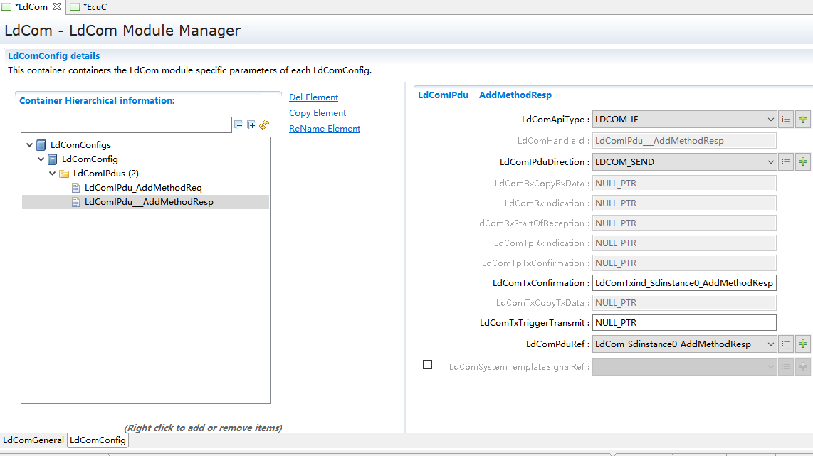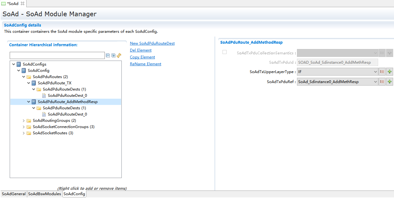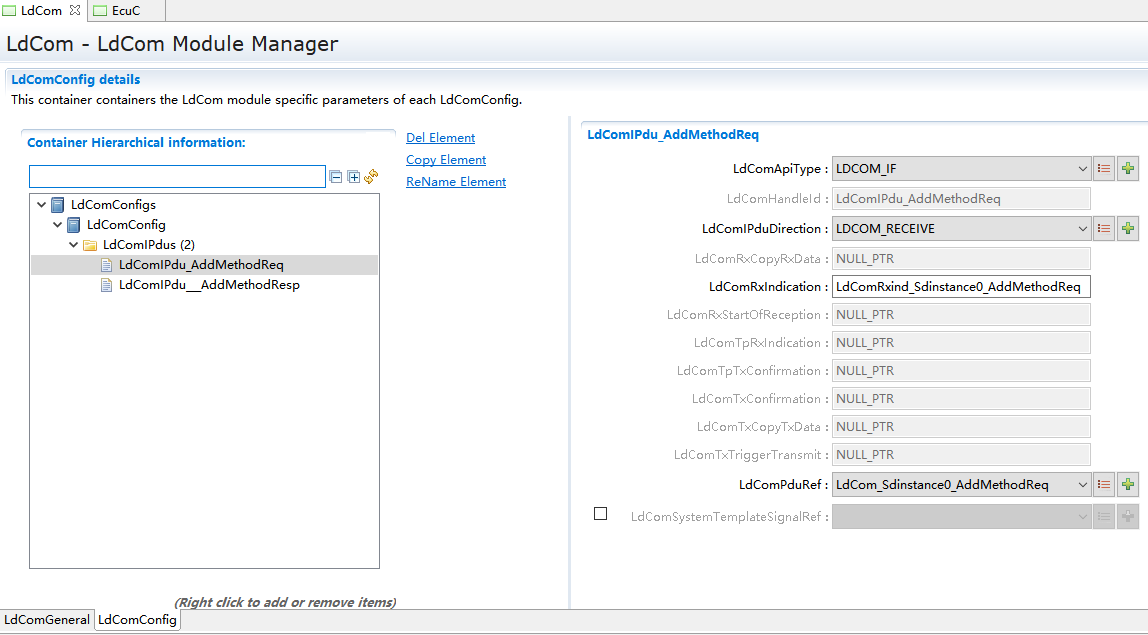配置4个PDU用于加法运算服务的收发,pdu长度为500, SoAd_SdInstance0_AddMethodReq、LdCom_SdInstance0_AddMethodReq、SoAd_SdInstance0_AddMethodResp、LdCom_SdInstance0_AddMethodResp;