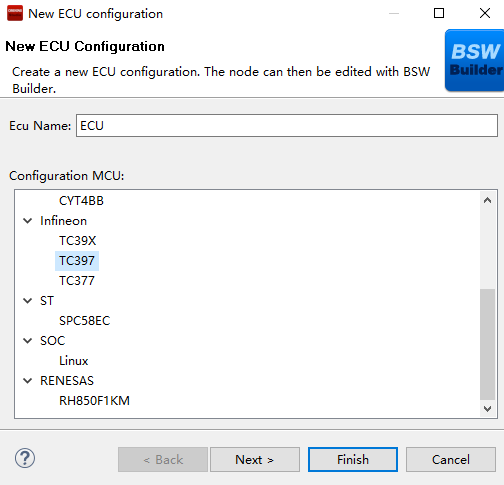 在工程的[Bsw_Builder]项目上右键,选择New ECU Configuration