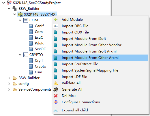 若配置工具已经搭建,则仅需进行SecOC相关模块的加载操作。 |