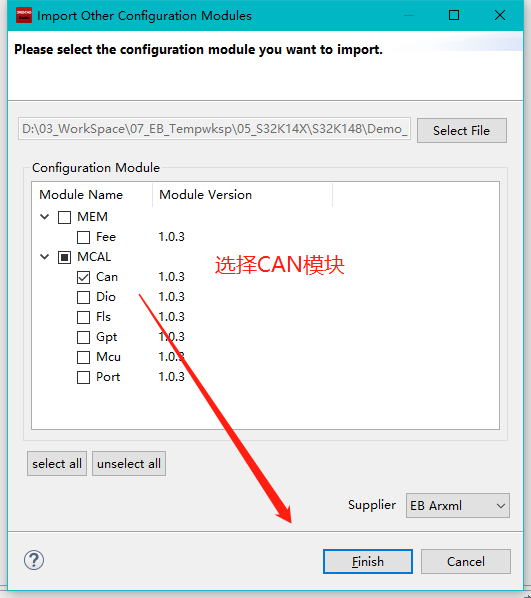 MCAL配置导入,BSW模块需要依赖MCAL生成的CAN模块