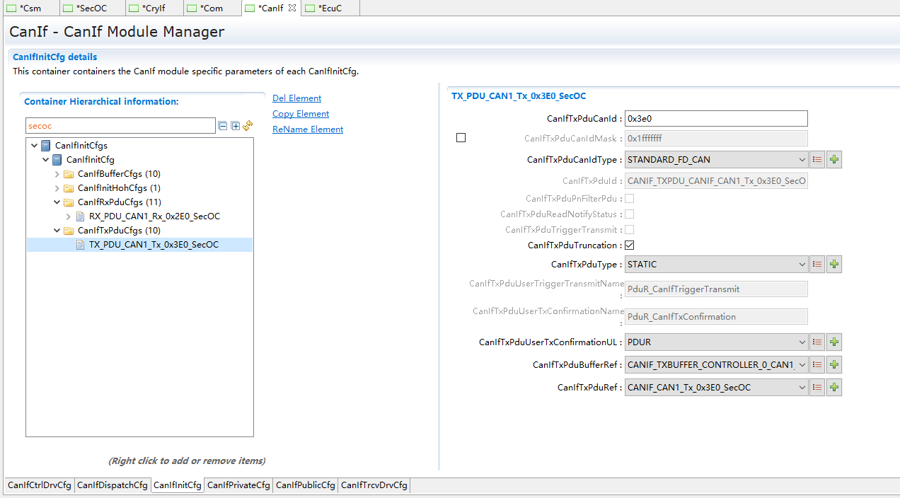 SecOCPduType:选择所走的协议,此例程为If。