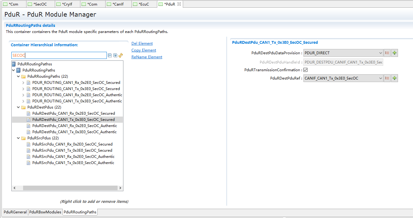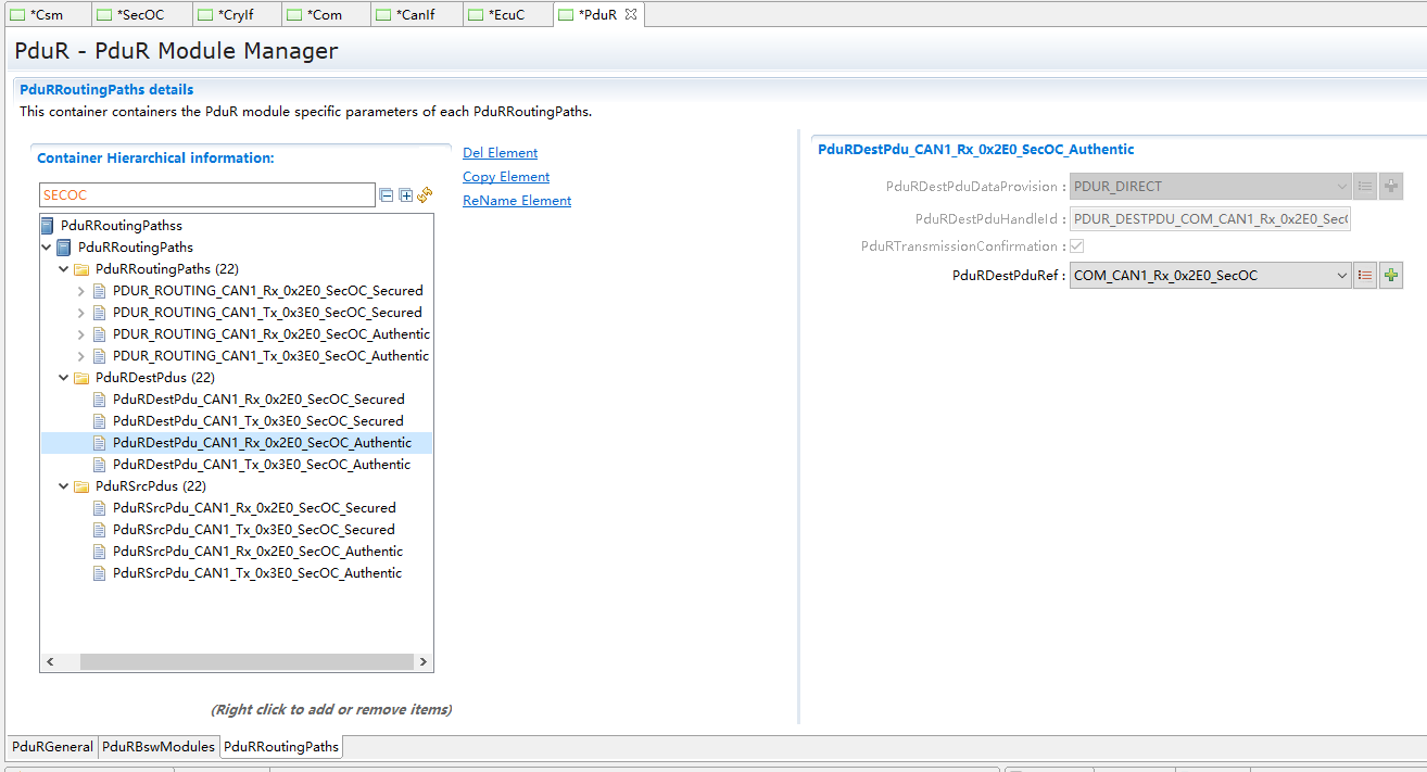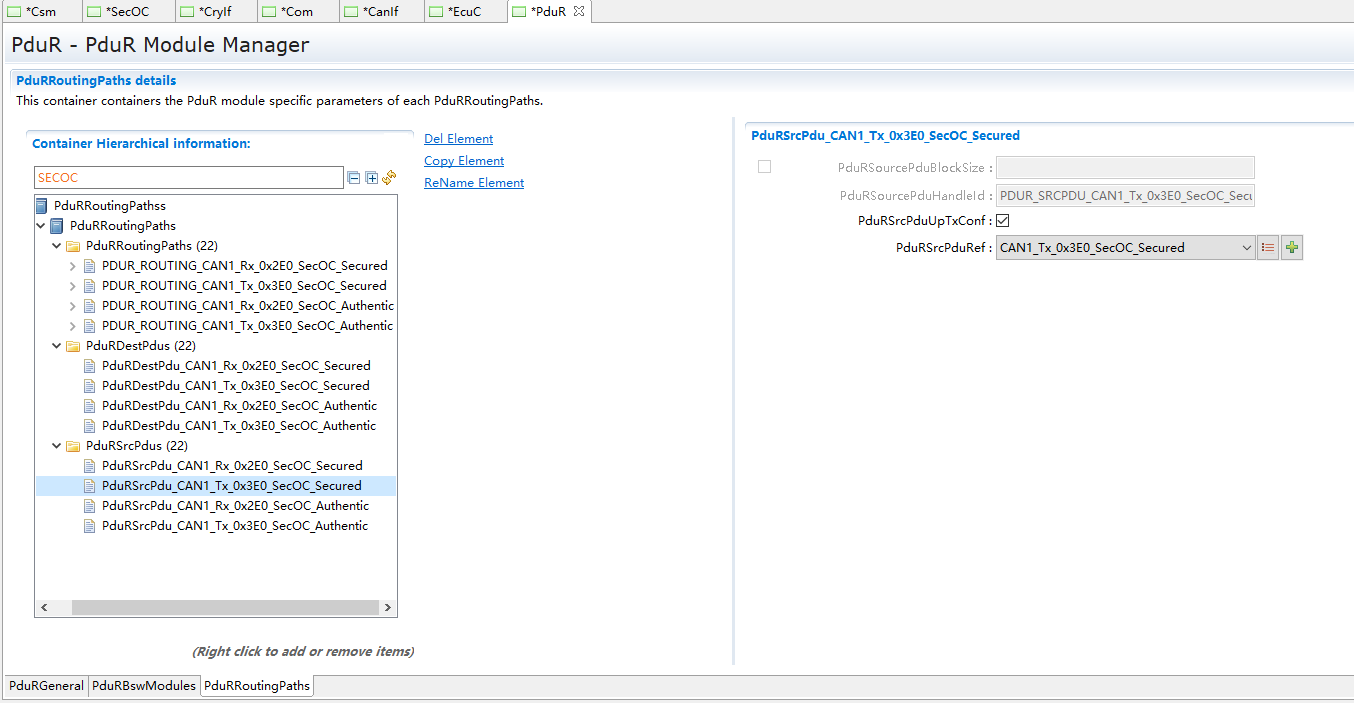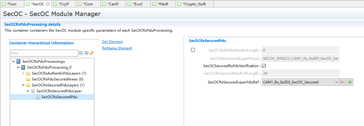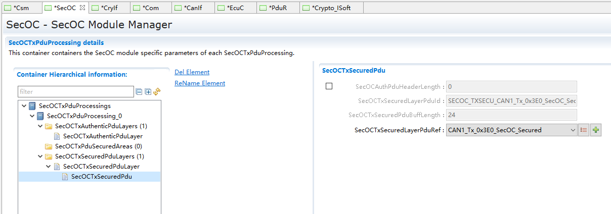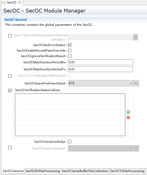 SecOC模块主要管理参与信息安全收发的PDU及相关属性 |