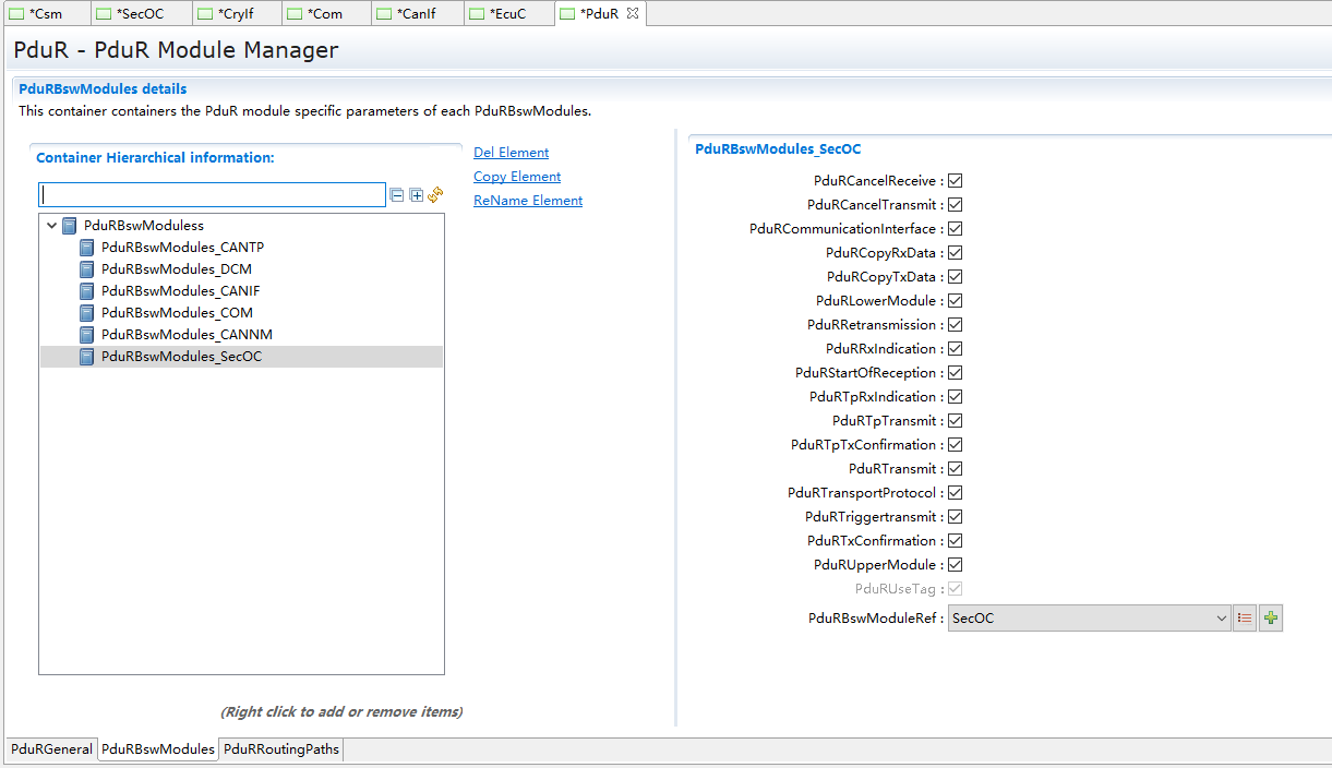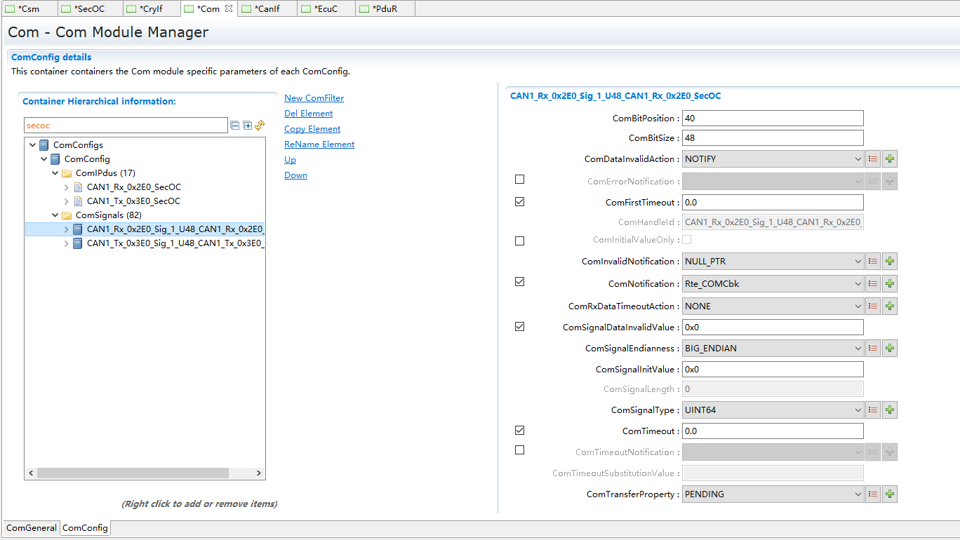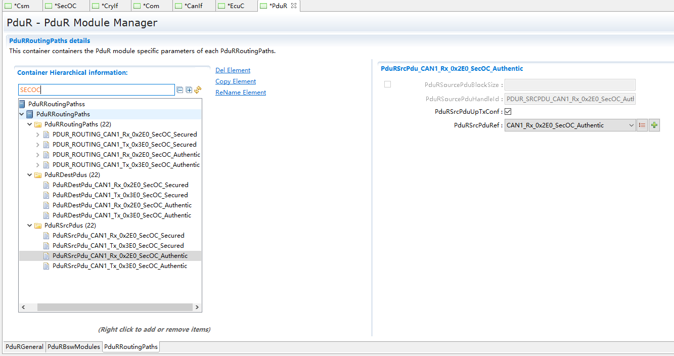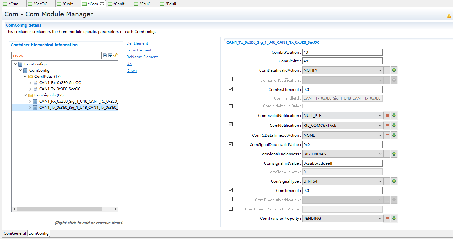 SecOC模块主要管理参与信息安全收发的PDU及相关属性 |