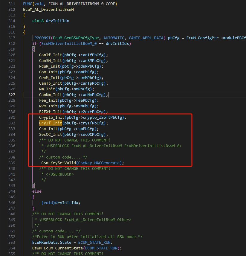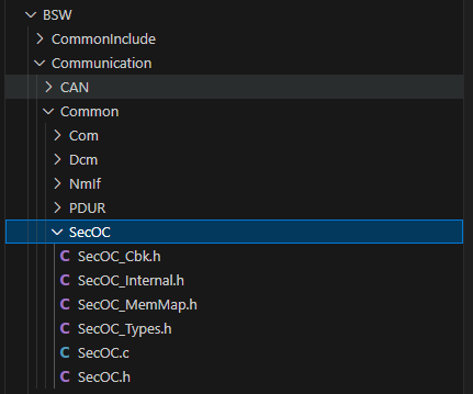 现有工程、SecOC相关模块源代码和配置生成文件的集成。 |
