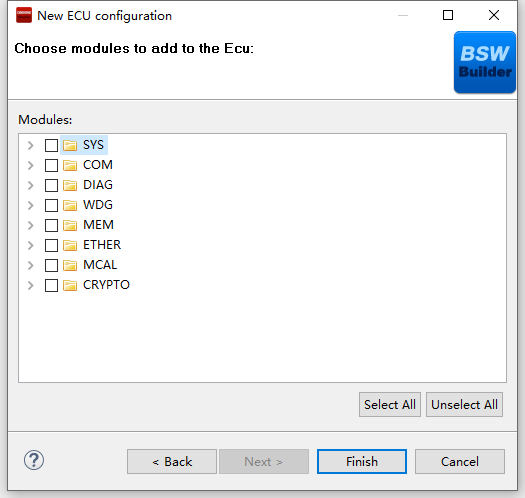 选择[Bsw_Builder],右键单击,选择New ECU Configuration。