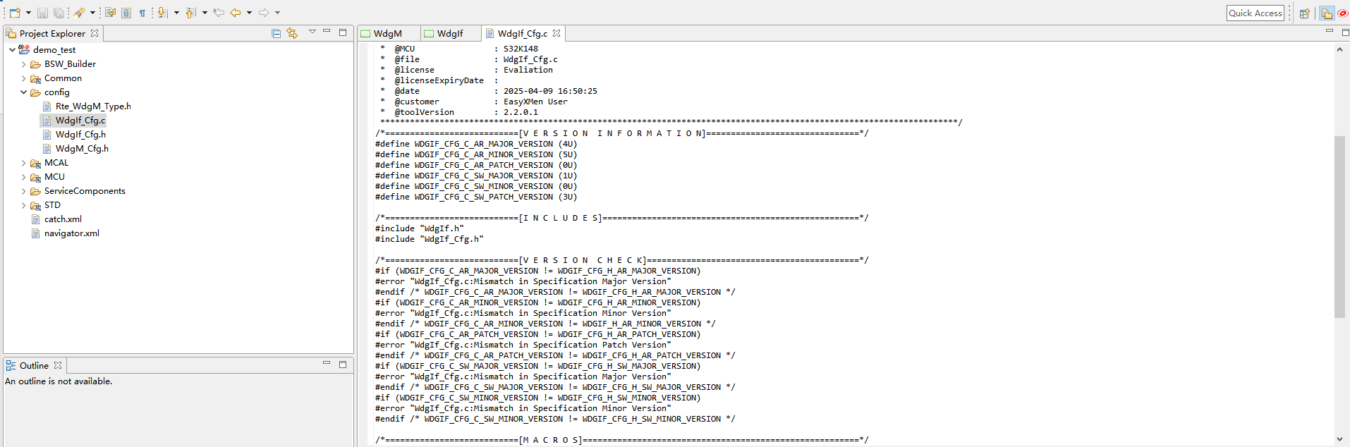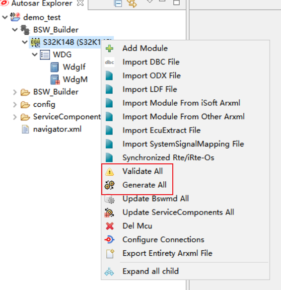 现有工程、WDG源代码和配置生成文件的集成。 |