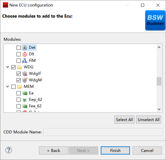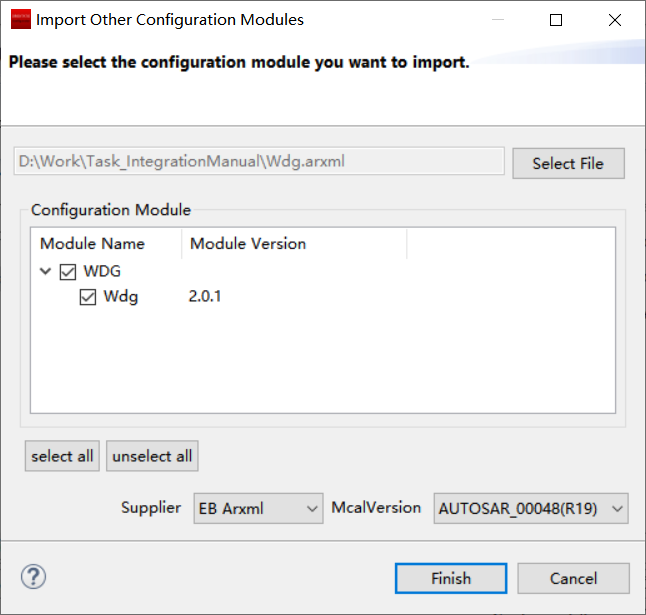 若配置工具已经搭建,则仅需进行WDG模块的加载操作。 |