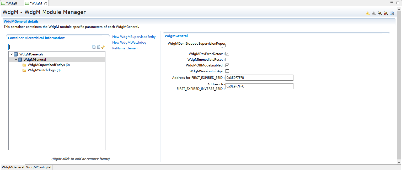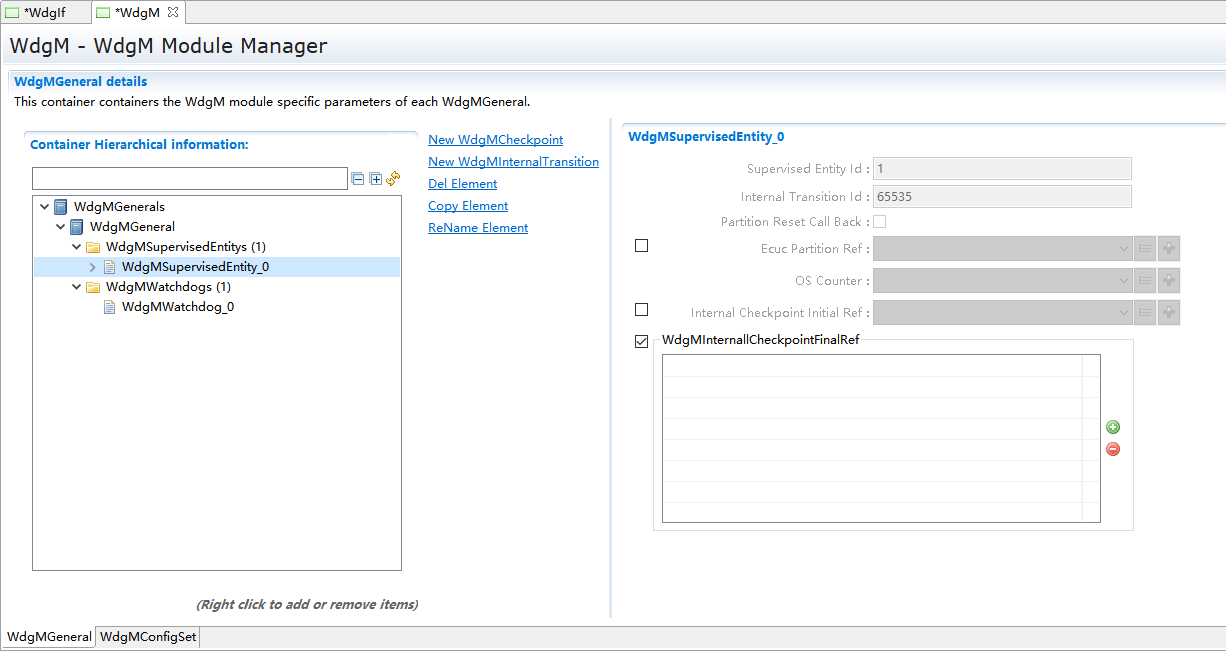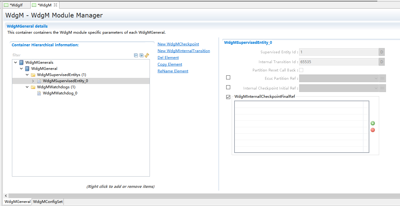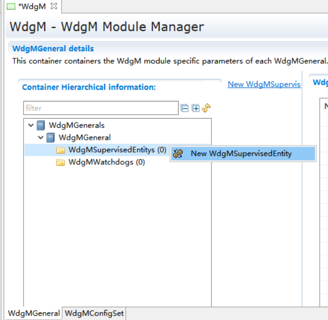 WdgMGenerals->New,新建一个WdgMSupervisedEntity和一个WdgMWatchdog。