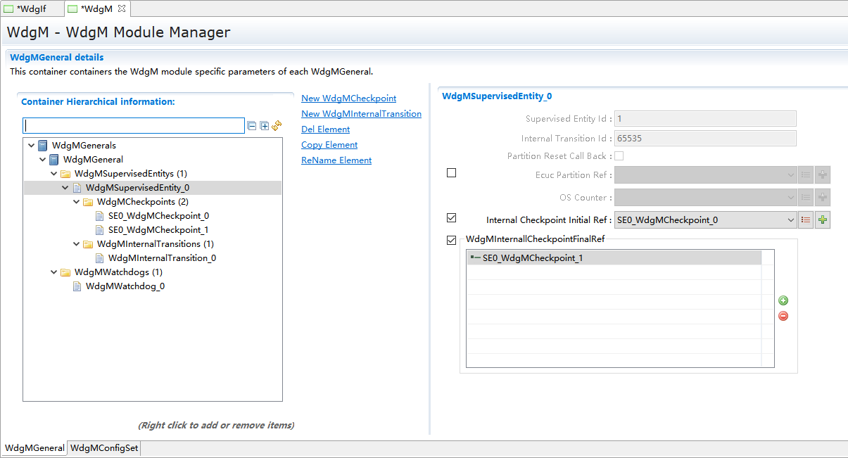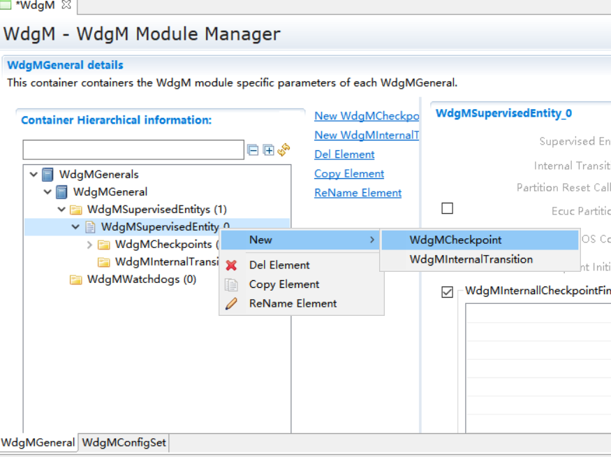 WdgSupervisedEntity_0->New,添加WdgMCheckPoint和WdgMInternalTransmition。