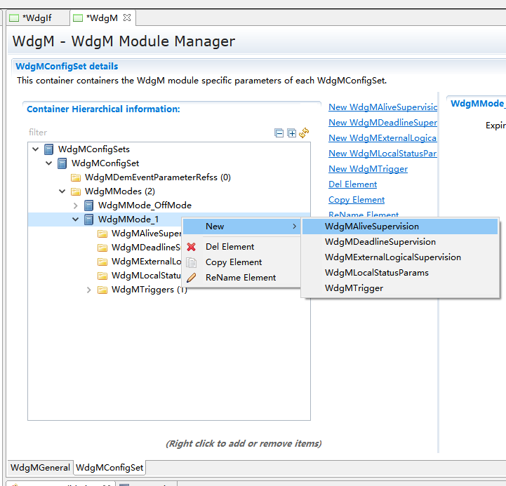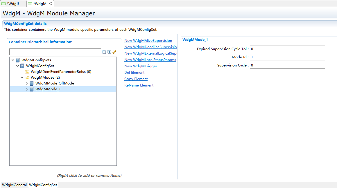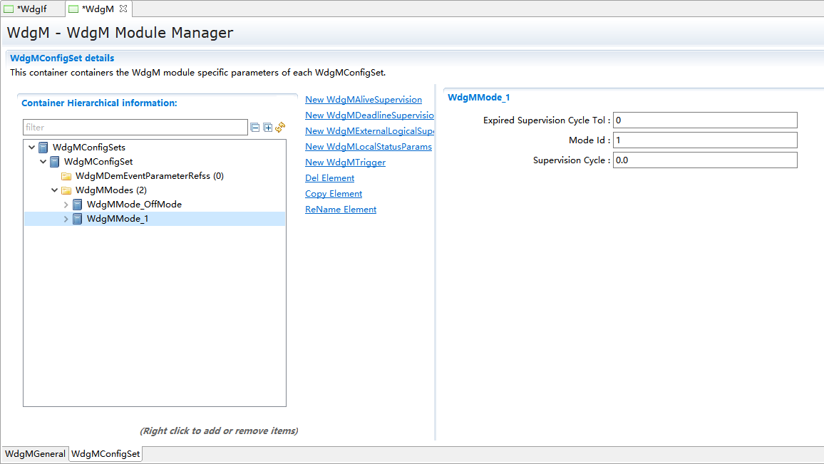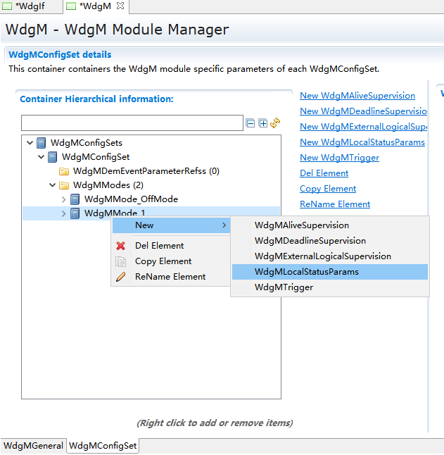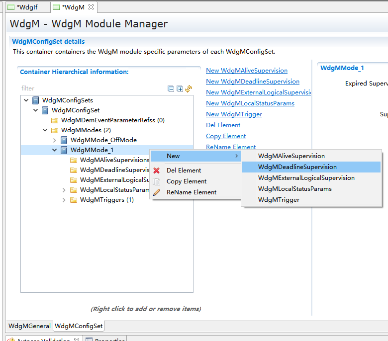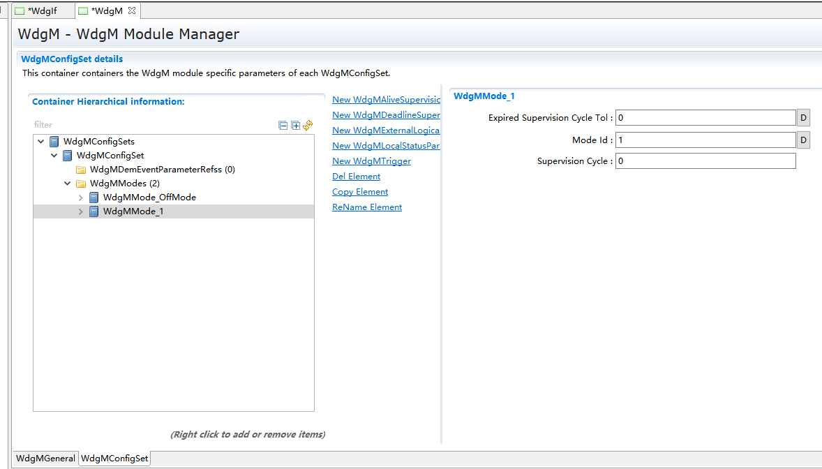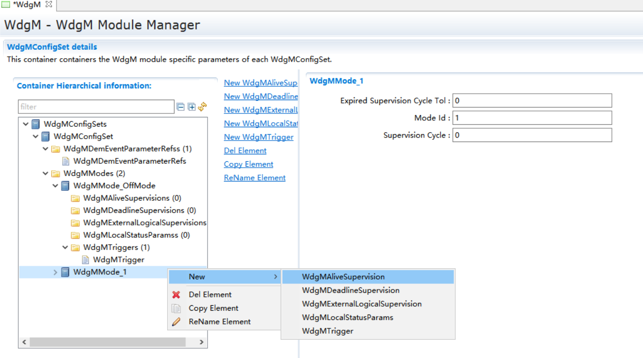WdgMMode_1->New,新建WdgMDeadLineSupervision和WdgLocalStatusParams。
