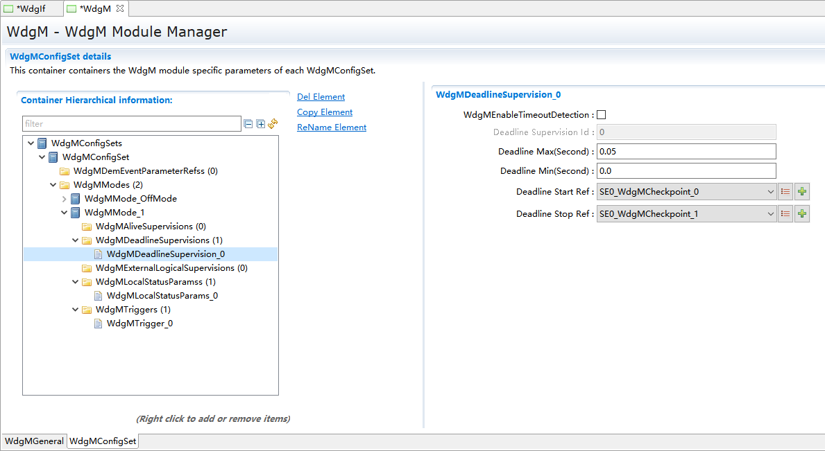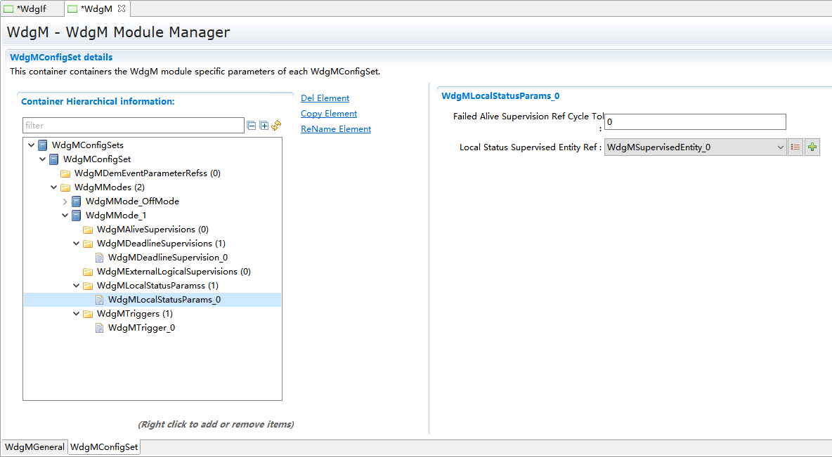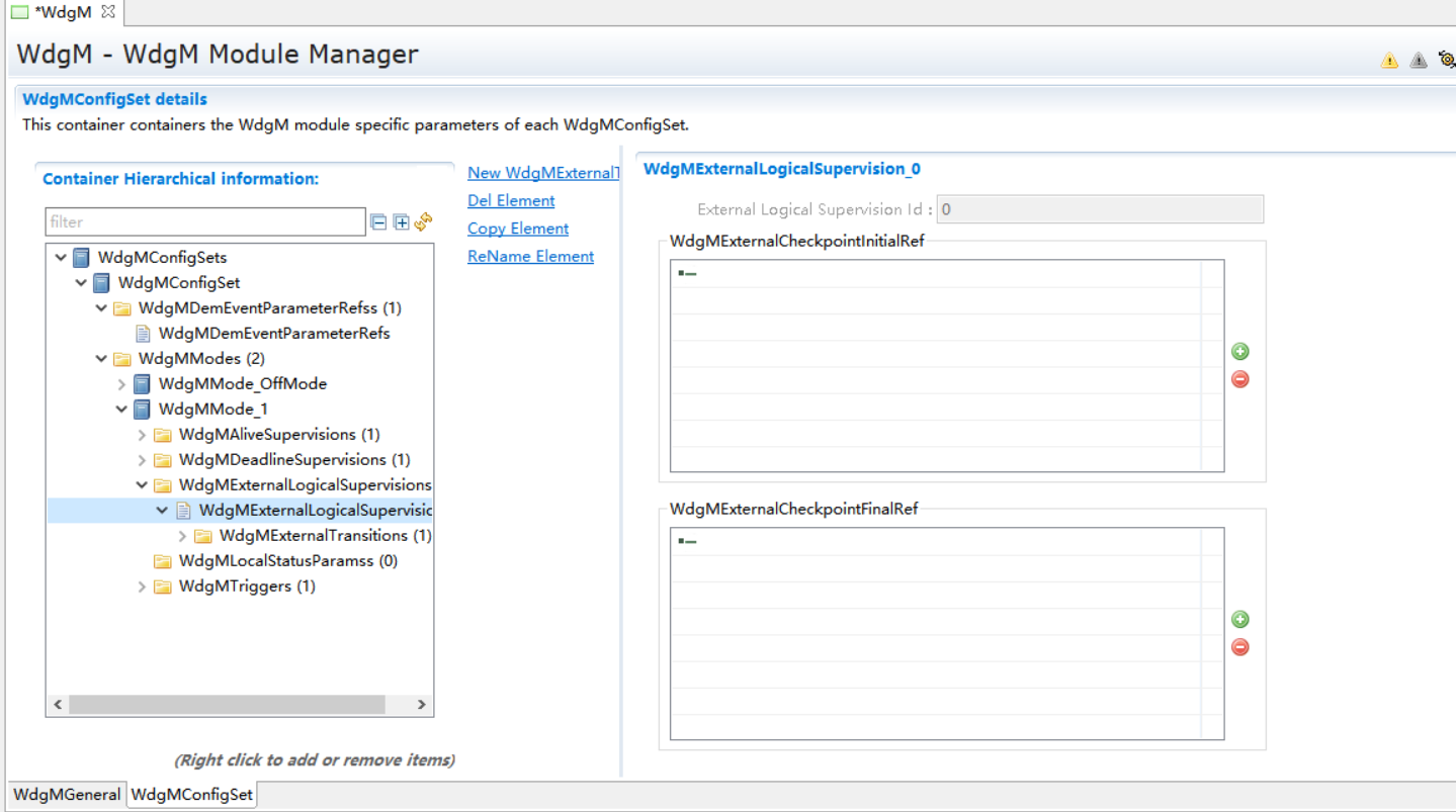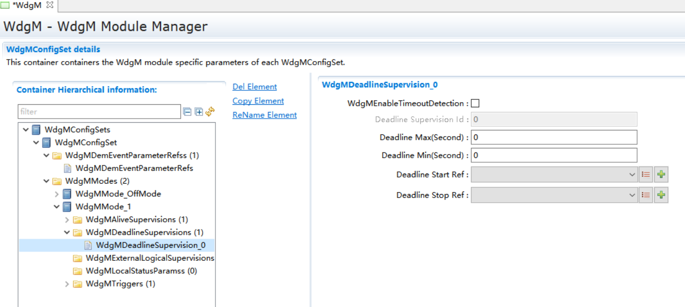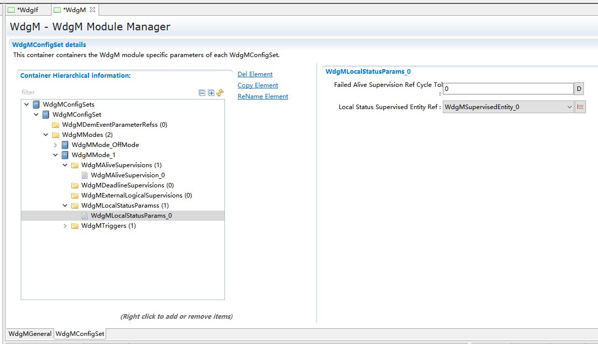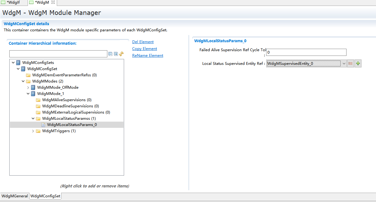 WdgMMode_1->New,新建WdgMDeadLineSupervision和WdgLocalStatusParams。